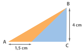 Calcula a área do triângulo ABC, sabendo que o triângulo azul é equilátero